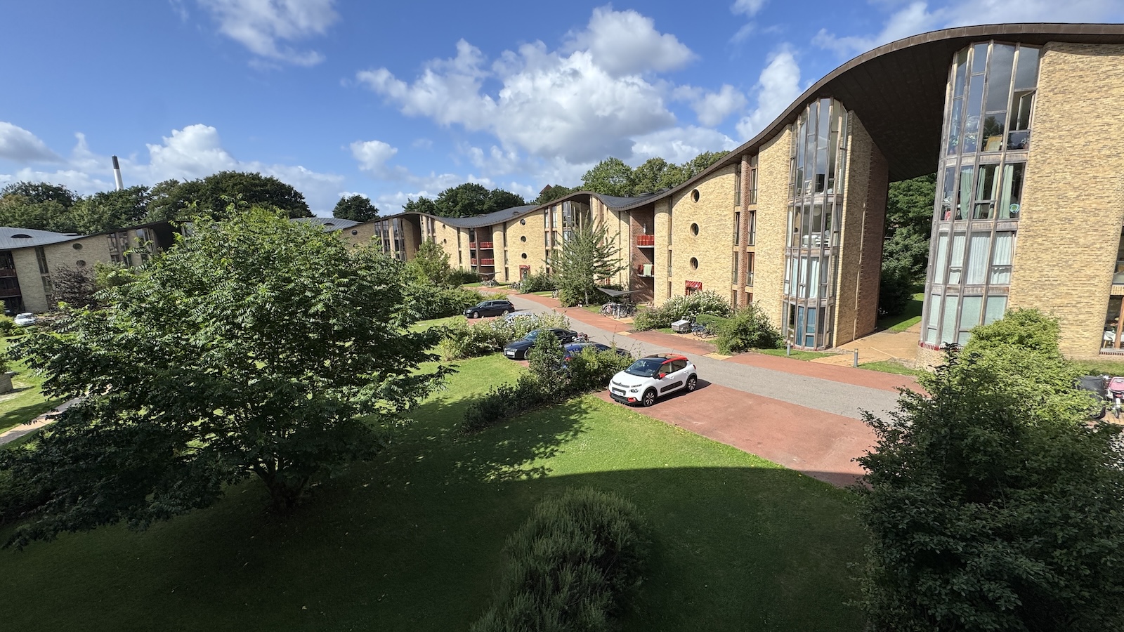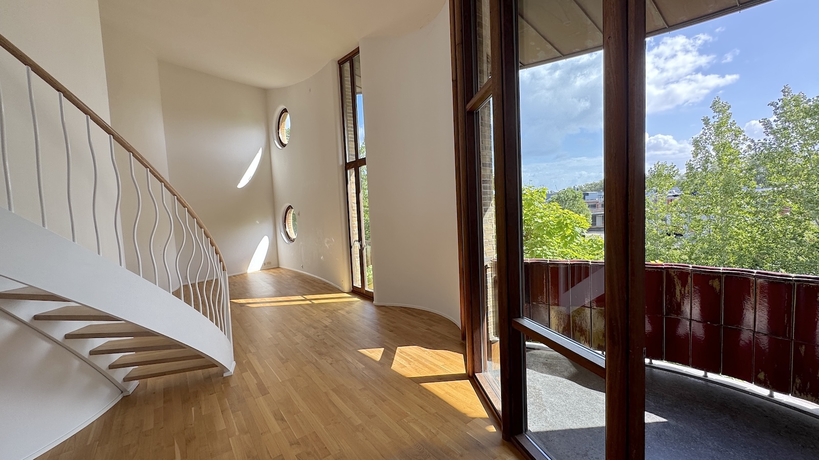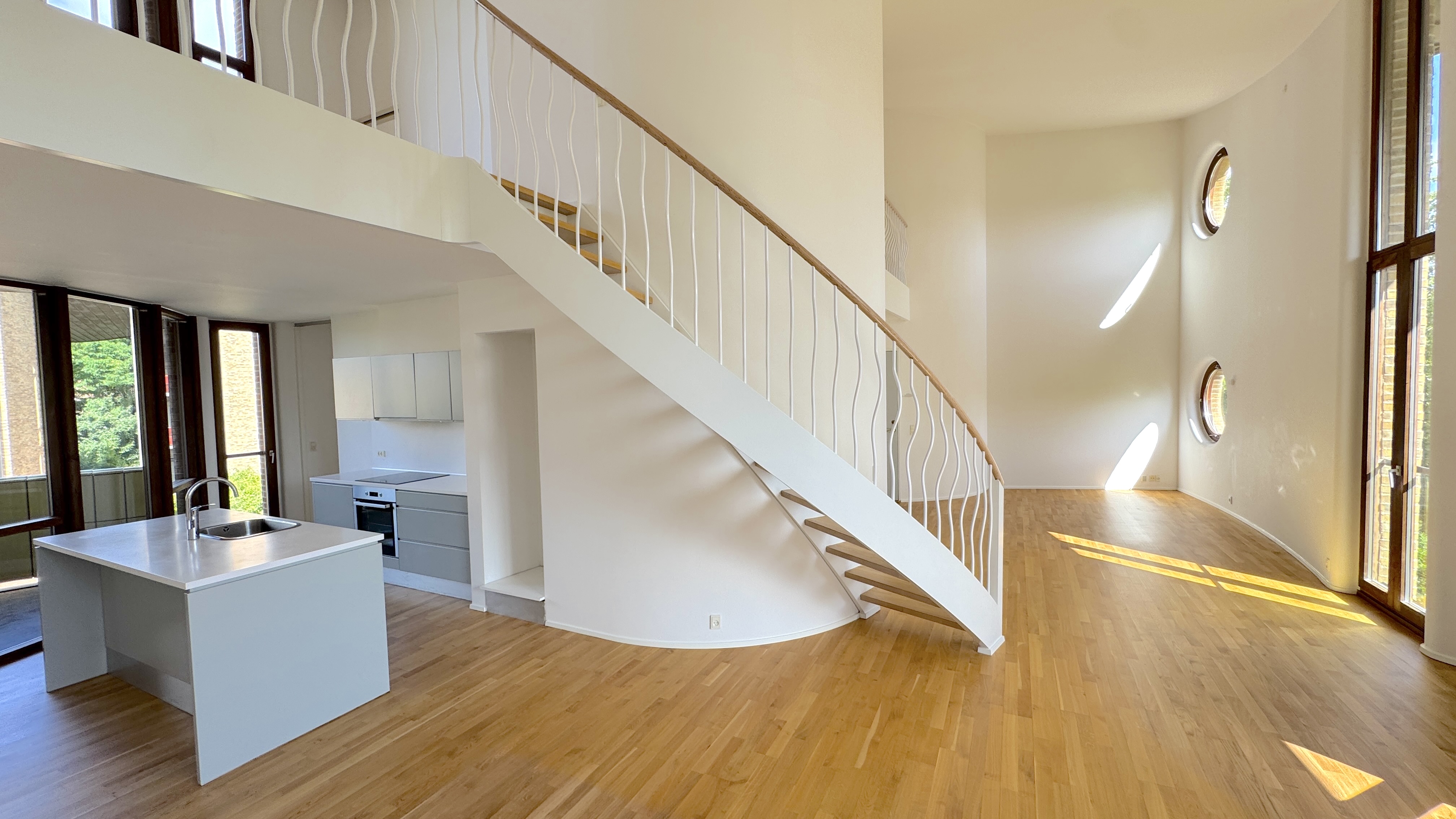 I de rolige og grønne områder nær Bispebjerg Hospital, findes denne helt unikke lejlighed på øverste etage. Lejligheden består af to plan. Nederste plan består af et et stort åbent rum med stue og køkken i åben forbindelse. To hyggelige altaner samt to soveværelser og badeværelse med bruseniche og vaskemaskine/tørretumbler. Øverste plan består af et åbent stueafsnit, endnu en altan, et soveværelse samt badeværelse med bruseniche. Ejendommen har en unik arkitektur og er beliggende i et roligt grønt område. Kort afstand til offentlig transport.