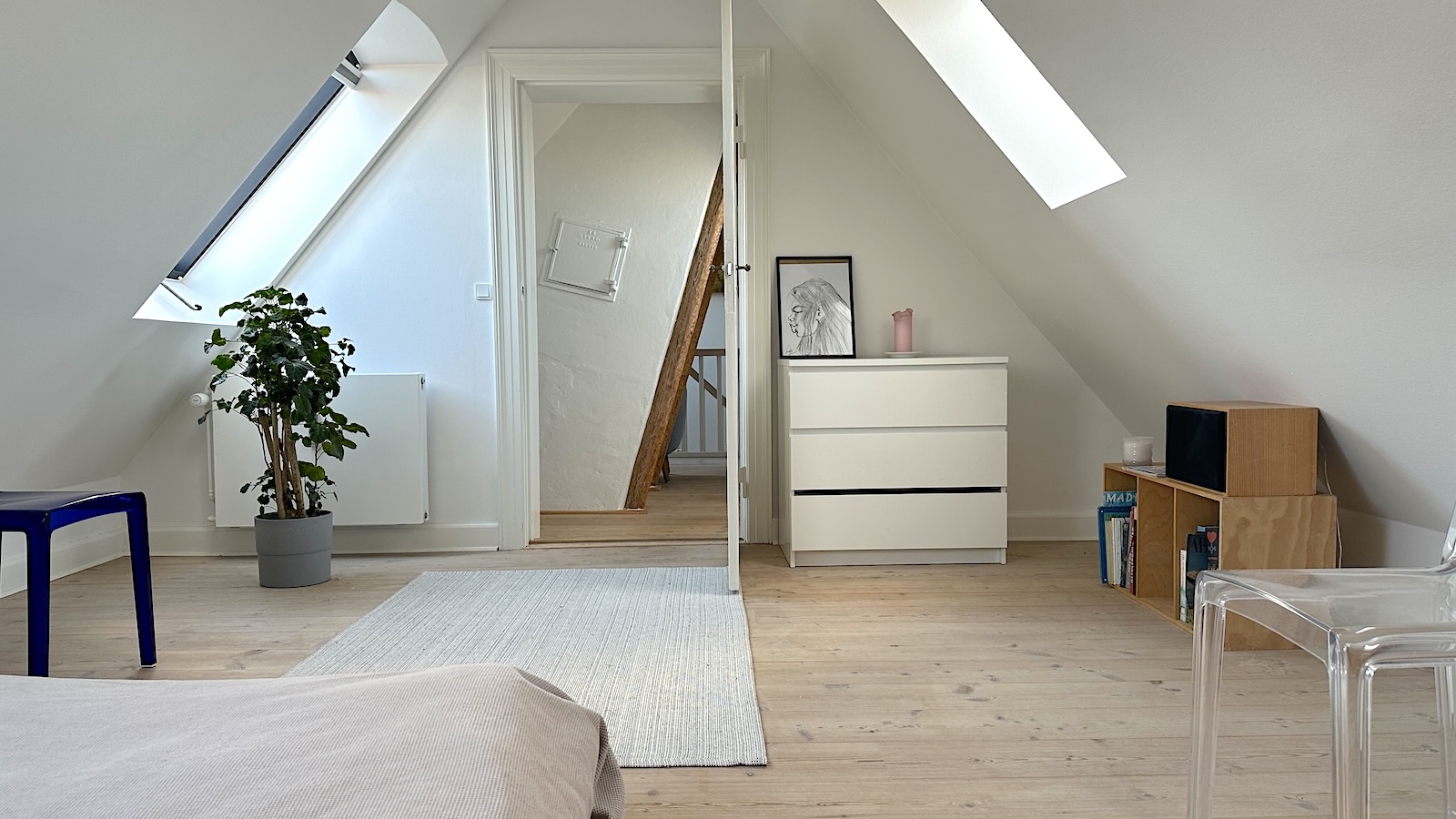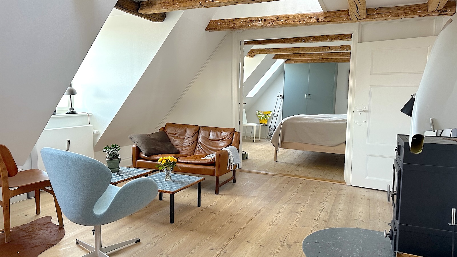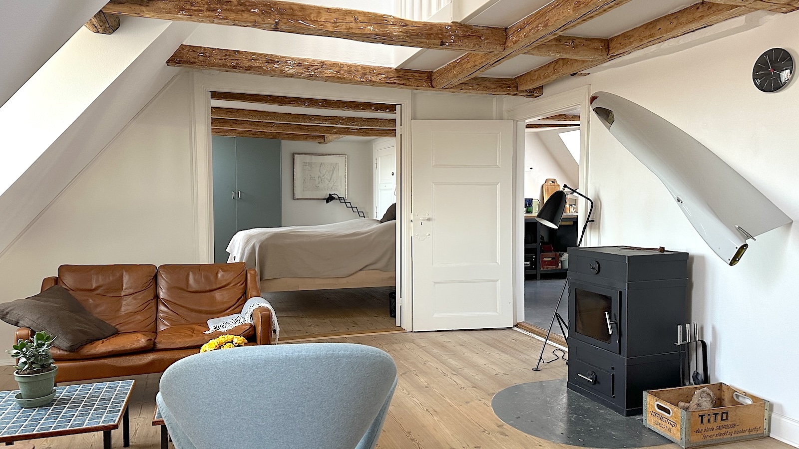 Lejligheden er i to plan, og er beliggende på 5.sal i en velholdt ejendom direkte til kanalen. Lejligheden består af en entre og et pænt istandsat badeværelse med bruseniche og vaskemaskine/tørretumbler. Super hyggelig stue med brændeovn og fritstående bjælker. Et rummeligt moderne køkken med spiseplads. Godt soveværelse med et lille kontor hjørne. På øverste sal er der en lille repos med sofa og yderligere et godt soveværelse. Der er udsigt til det charmende gamle Christianshavn og kanalen fra alle lejlighedens rum. Der er desuden adgang til en hyggelig gård. Ejendommen har en fantastisk beliggenhed, med kort afstand til Metro, indkøbsmuligheder og diverse restauranter og det hyggelige cafemiljø på Christianshavn.
