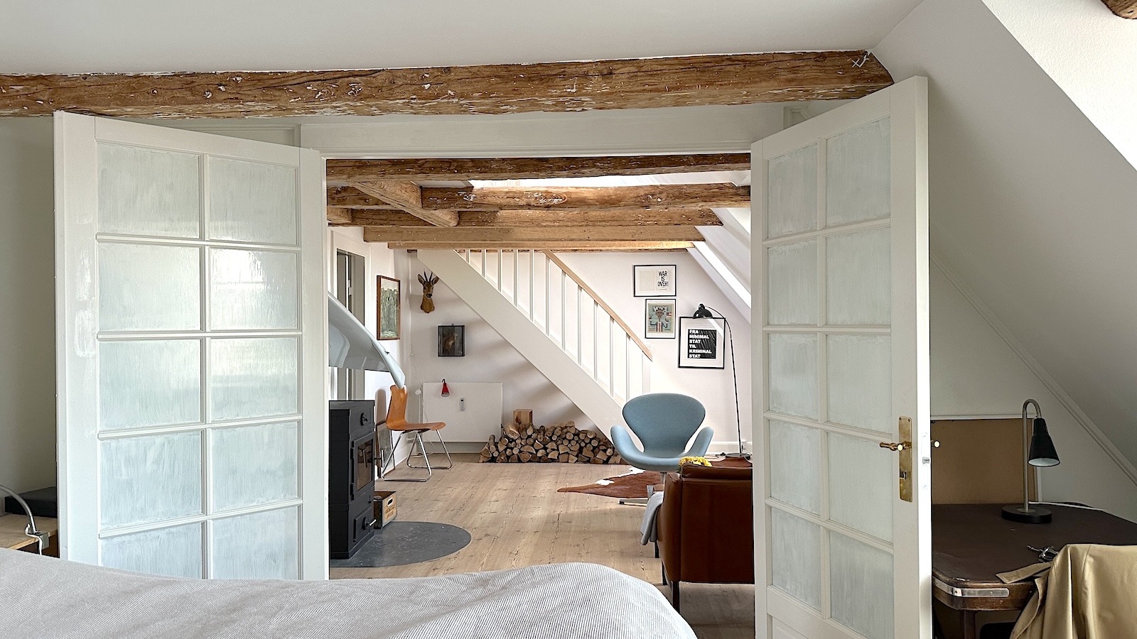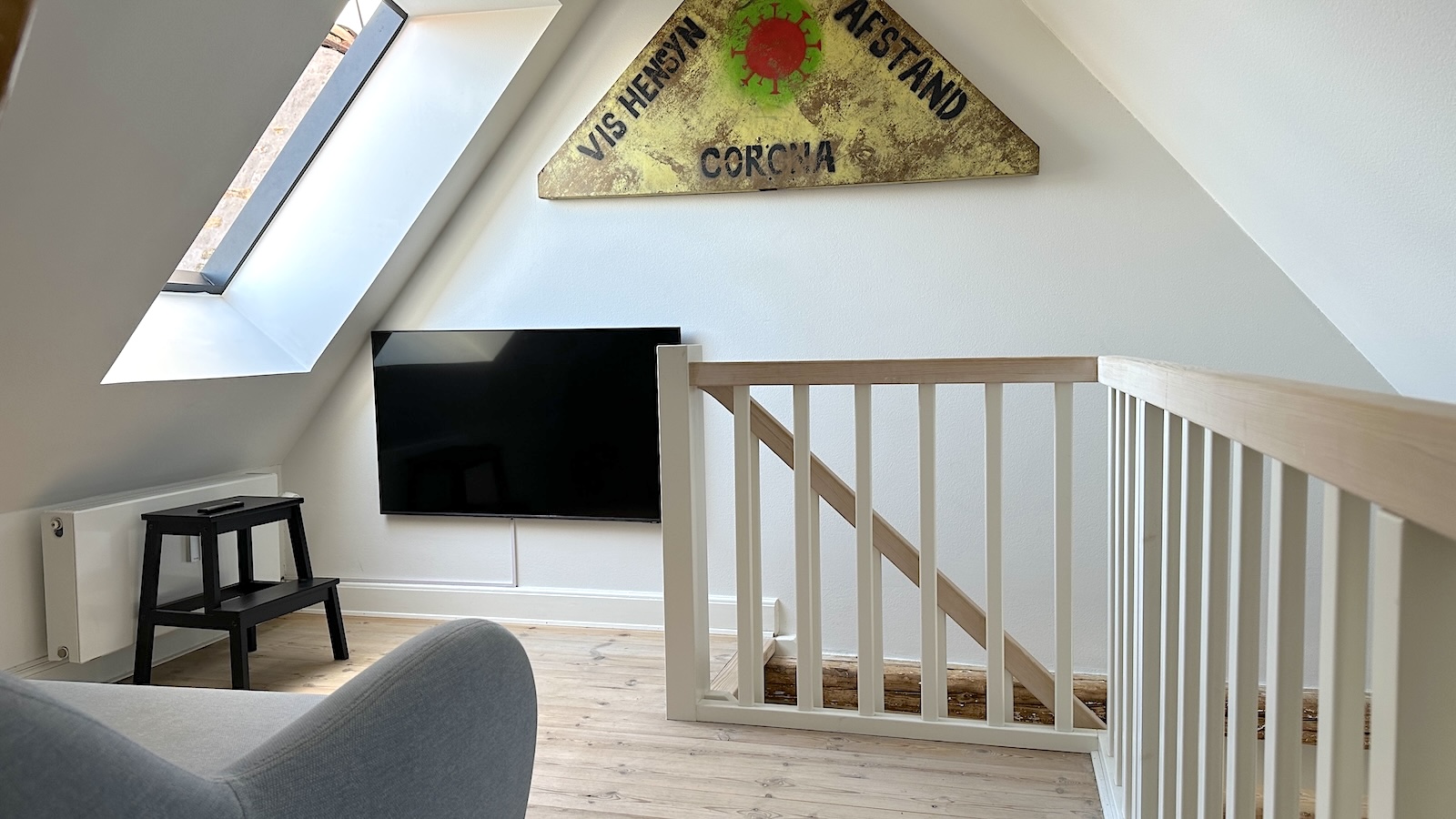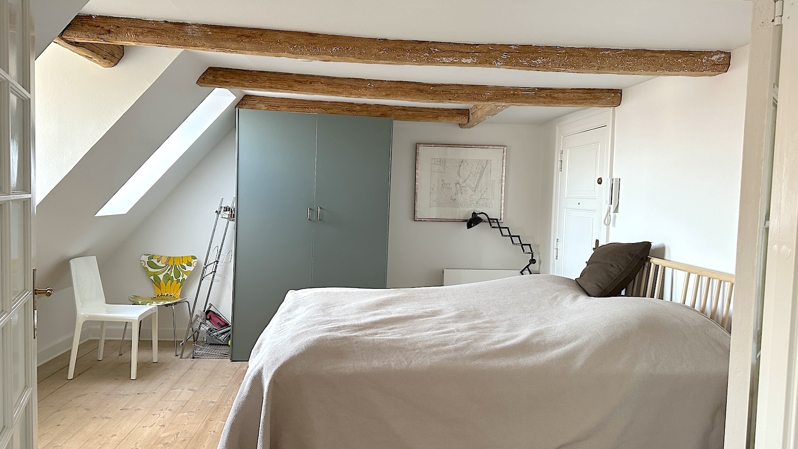 Lejligheden er i to plan, og er beliggende på 5.sal i en velholdt ejendom direkte til kanalen. Lejligheden består af en entre og et pænt istandsat badeværelse med bruseniche og vaskemaskine/tørretumbler. Super hyggelig stue med brændeovn og fritstående bjælker. Et rummeligt moderne køkken med spiseplads. Godt soveværelse med et lille kontor hjørne. På øverste sal er der en lille repos med sofa og yderligere et godt soveværelse. Der er udsigt til det charmende gamle Christianshavn og kanalen fra alle lejlighedens rum. Der er desuden adgang til en hyggelig gård. Ejendommen har en fantastisk beliggenhed, med kort afstand til Metro, indkøbsmuligheder og diverse restauranter og det hyggelige cafemiljø på Christianshavn.